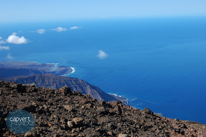 Notre journée commence à l’aube avec l’escalade de la montagne la plus haute de l'île : Tope de Coroa (littéralement : le « haut de la couronne ») s’élève à 1979 mètres. Le souvenir du spectacle offert par ce paysage lunaire et des couleurs saisissantes de cette région reste à jamais gravé dans la mémoire des randonneurs : de quoi alimenter les conversations à la lumière des bougies au retour chez nos hôtes.