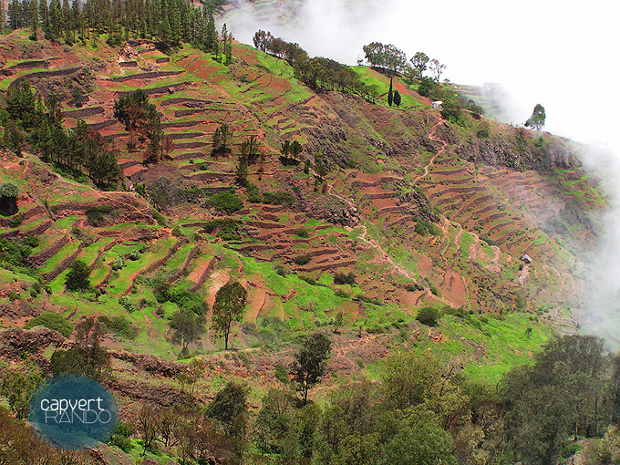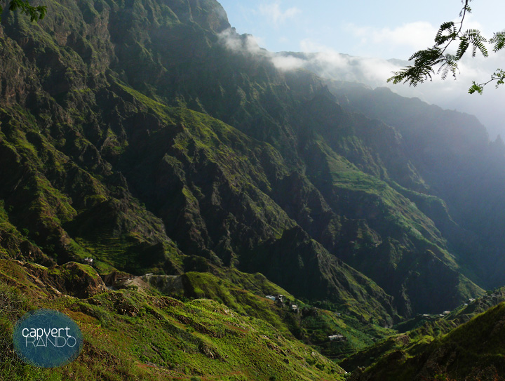 Après le petit déjeuner, nous traversons deux vallées. L’apprentissage rapide de quelques mots en créole capverdien nous permet d’aller un peu plus loin dans nos échanges avec les petits agriculteurs que nous croisons. Après quelques moments de convivialité dans le village autour d’un jeu de cartes ou au comptoir de la mercerie, une famille nous accueille pour la nuit : le dîner est un pur délice. Moment fantastique de simplicité et d’humanité.