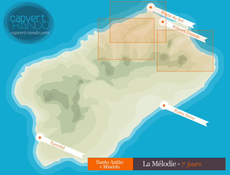Un circuit au tempo modéré dans les îles du nord, où vous alternerez paisiblement randonnées dans les montagnes de Santo Antão et excursions dans Mindelo, capitale culturelle du Cap-Vert, ancienne Rome de l'Atlantique où la vie pétille au rythme des fêtes et des concerts.