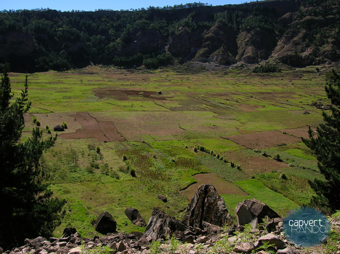 Pour ne rien perdre de cette journée magnifique, nous commençons très tôt l’une des randonnées les plus spectaculaires que le Cap Vert offre : la côte. Accrochés aux flancs d’une falaise, et bordés par l’immensité de l’océan Atlantique, les petits sentiers de bergers nous font parcourir des paysages surnaturels, dévoilant de nouvelles surprises à chaque tournant. Ce circuit est considéré comme l’un des plus beaux de l’île. Au fil des rencontres avec les habitants des petits hameaux traversés, notre vocabulaire en créole s’enrichit peu à peu, mais certainement moins vite que notre collection de sourires.