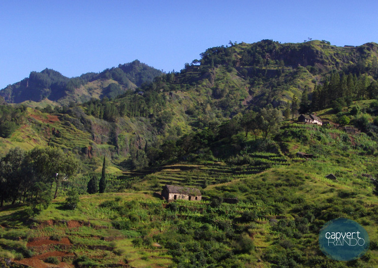 Après le petit déjeuner, nous traversons deux vallées. L’apprentissage rapide de quelques mots en créole capverdien nous permet d’aller un peu plus loin dans nos échanges avec les petits agriculteurs que nous croisons. Après quelques moments de convivialité dans le village autour d’un jeu de cartes ou au comptoir de la mercerie, une famille nous accueille pour la nuit : le dîner est un pur délice. Moment fantastique de simplicité et d’humanité.