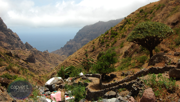 Sans abus de langage, la région nord-est de Santo Antão est un vrai paradis vert, avec des vallées couvertes d'un tapis de végétation tropicale. Papayes, mangues, bananes, fruits à pain, patates douces, ignames, canne à sucre : restée très rurale, Santo Antão exporte ses produits vers Mindelo.