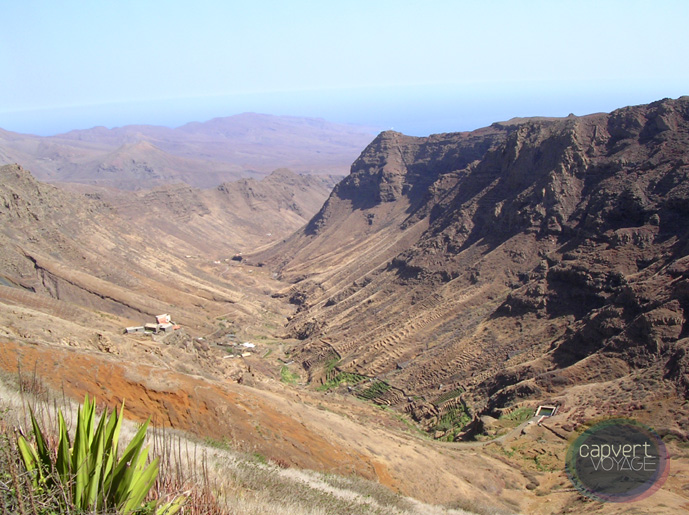 Vol pour l’île de Sao Nicolau, ce secret connu seulement des initiés. C’est par une toute petite fenêtre un rien symbolique que nos bagages nous sont fournis à l’aéroport, comme une invitation au voyage. Elle semble un peu oubliée, cette île, et pourtant elle propose généreusement une variété de paysages tout simplement sensationnels. Découvrez le dragonnier, cet arbre pluticentenaire à la morphologie si particulière et que l'on ne trouve qu'au Cap-Vert, aux Canaries et à Madère. Sa sève rouge (le sang du dragon) sert de colorant. Nuit en pension à Vila de Ribeira Brava.